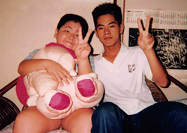 信介さんが高校生、宏介さんが小学生のころ。お姉さんがいる3人兄弟。バスや電車が好きな宏介さんをよくバス営業所に連れて行っていた。
