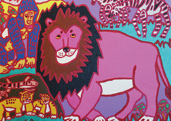 テレビドラマ「ライオンの隠れ家」の第一話で登場したライオンの絵。ドラマの制作スタッフが信介さんの著書を読んだことをきっかけに、ドラマの構想が企画され、宏介さんの絵が採用された。
