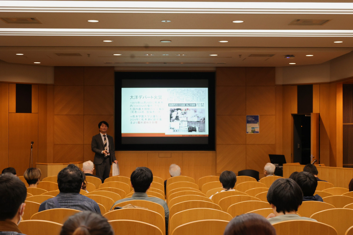 11月26日(水)熊本学園大学付属図書館AVホールにて、ミニシンポジウム「大洋デパート火災資料の人権論的意義」が開催されました。本シンポジウムは、昨年12月に本学図書館に寄贈された資料の社会的価値を、法学・実務・歴史学の観点から考察し、裁判資料の保存という「記憶の継承」の意義を再考することを目的としています。