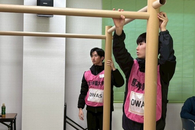 11月28日(金)、社会福祉学部の黒木邦弘教授(専門:ソーシャルワーク方法論)と、そのゼミ生は、社会福祉法人リデルライトホームおよび社会福祉連携推進法人ジョイント&リップルが実施主体となり行われた「福祉避難所開設支援」と「福祉車中泊設置支援」を主な内容とする訓練に参加しました。訓練には、本学に加え、熊本県内の福祉系大学の学生たちも「Disaster Welfare Assistance Students(以下DWAS※1)」として参加しました。