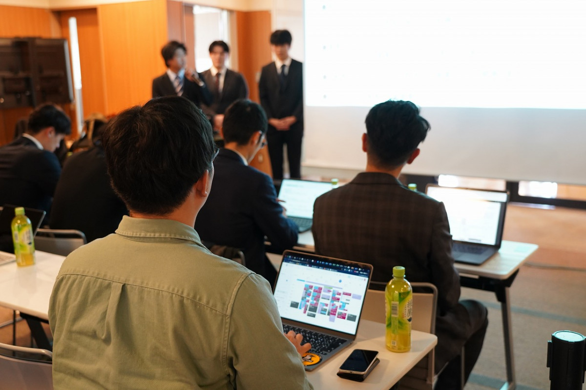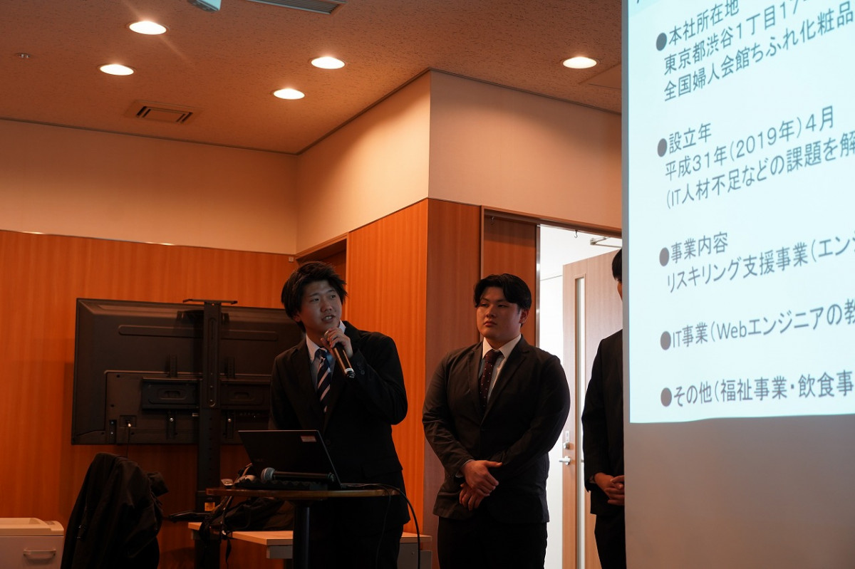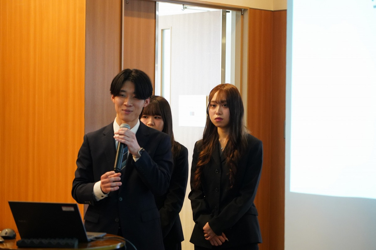 当日は、ゼミ生が3グループに分かれ、県内の中小・ベンチャー企業3社が抱える経営課題に対する取り組み内容を発表しました。