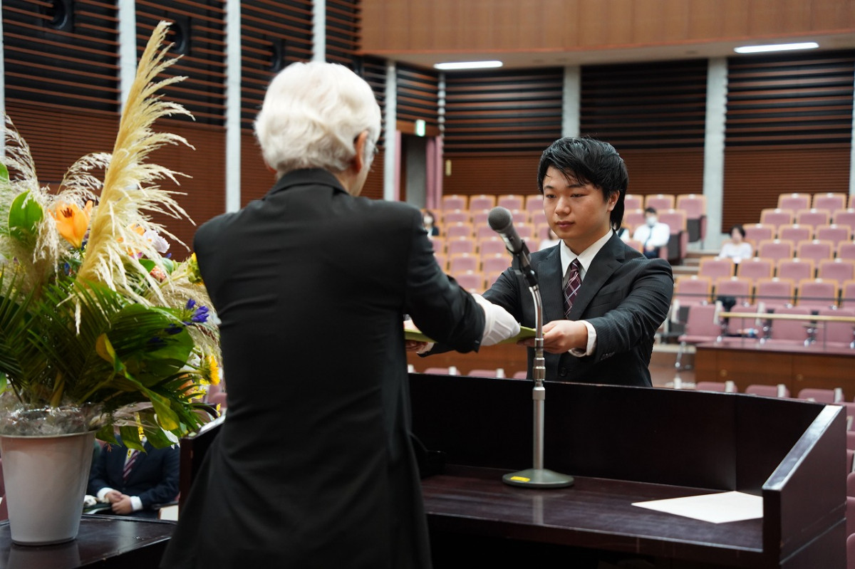 閉式後、各学部長より一人ひとりに学位記とともに励ましの言葉が贈られ、卒業生・修了生は笑顔で学生生活の最後を締めくくりました。