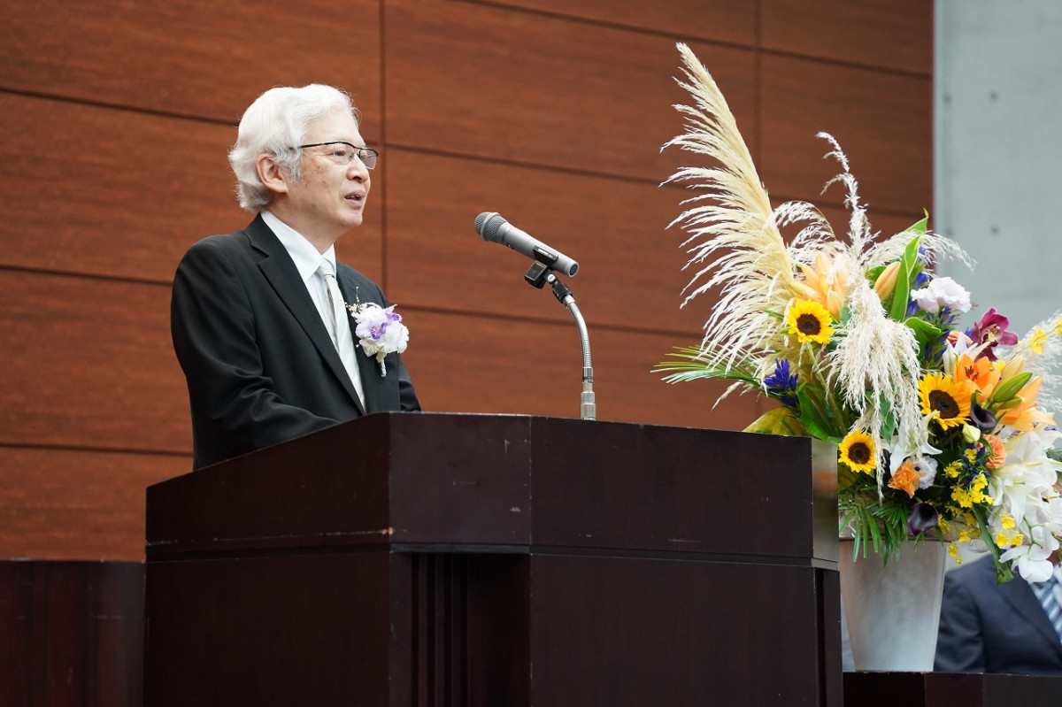 林学長は告辞で「大学や大学院で過ごした日々は、時間を自由に使えた恵まれた日々だったことでしょう。これからは、健康に留意しながらそれぞれの道で頑張ってください。迷ったときには、いつでも大学時代・大学院時代の恩師を頼ってください。卒業しても、私たちは全学一家の精神でつながっています」と述べた。