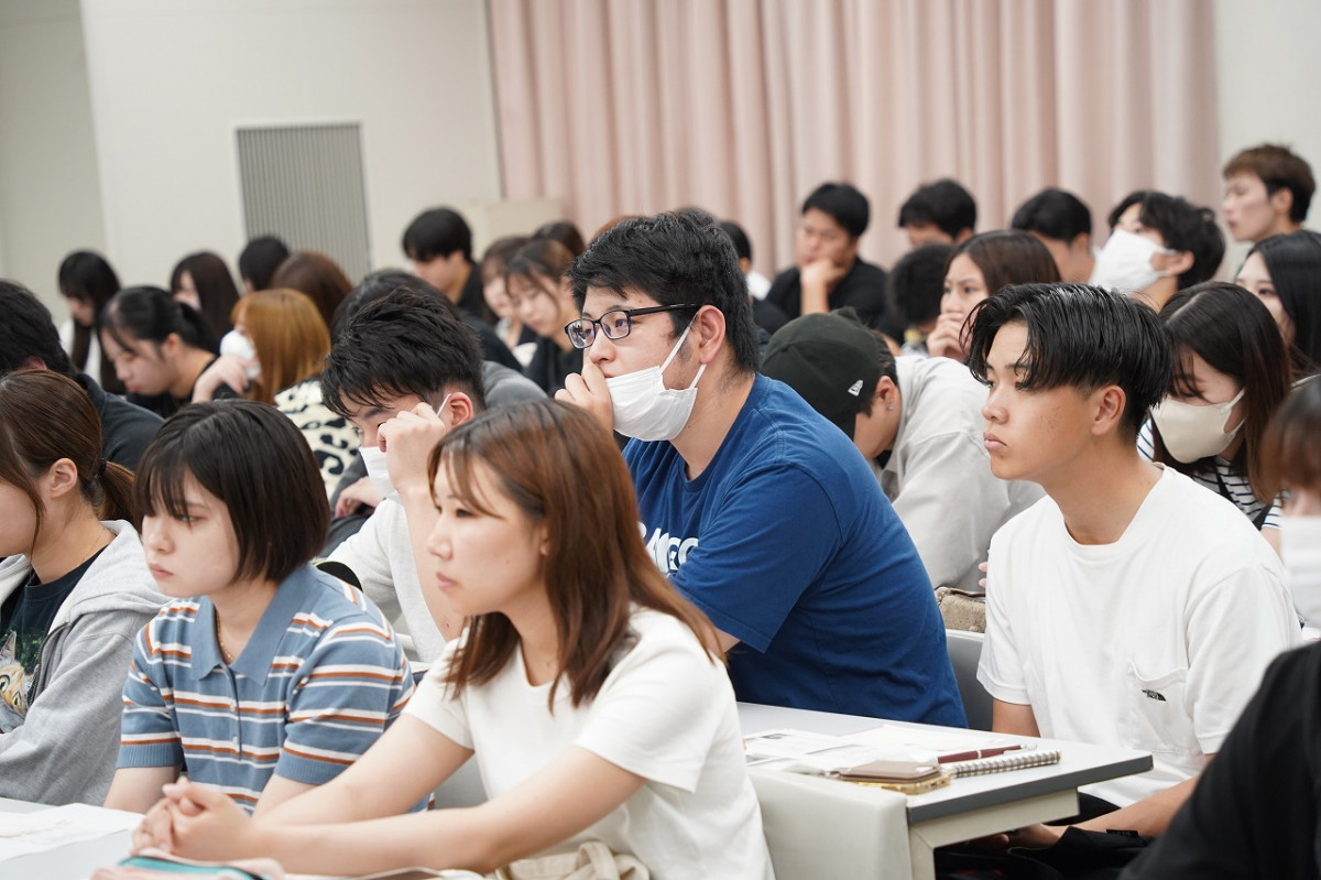 松崎陽向さん(子ども家庭福祉学科3年生)は、「私は水俣市に近い地域の出身で、これまでにも水俣について学ぶ機会がありました。ただ、それは主に水俣病やその背景に関するもので、当事者や周囲の人々の思いに触れる機会はあまりありませんでした。この講義では、そうした人々の声を知ることができ、とても勉強になります」と感想を述べました。