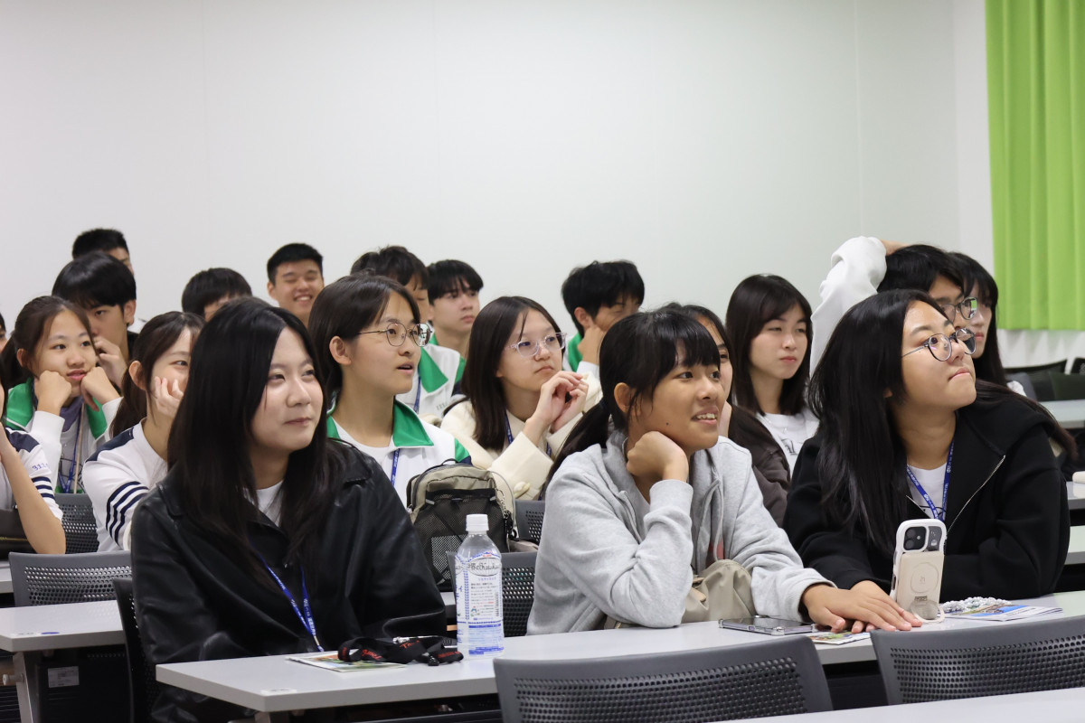 10月24日(金)、「新1号館 みらい」132教室において、台湾・国立陽明交通大学附属竹北高級中学の訪問団を迎え、交流会を開催しました。本交流は、日台の学生・生徒の交流を通じた相互理解と友好関係の一層の促進と海外の中・高校生向けに熊本への留学促進を図ることを目的としています。当日は本学の学生8名、訪問団30名が参加しました。
