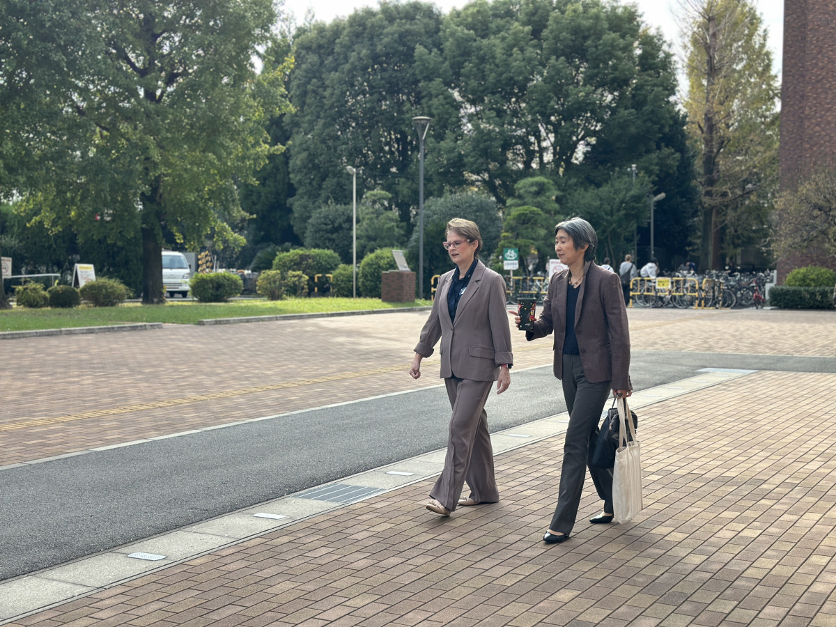 先ず、向井洋子国際交流委員長の案内でキャンパスツアーを実施。その後の意見交換会では、長年継続している交換留学制度に加え、短期プログラムの実施や学生交流機会の拡充など新たな取り組みに向けて、積極的な交流を推進するための議論が交わされました。