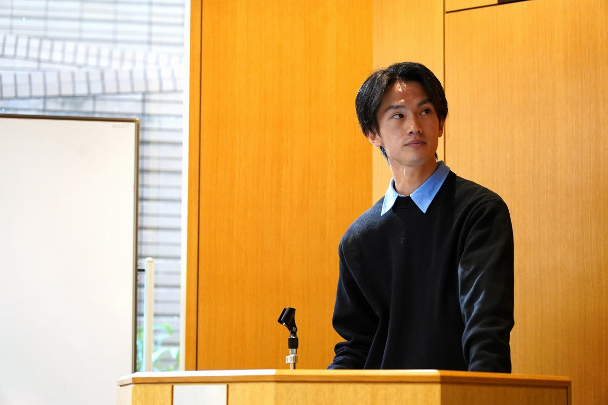 ライフ・ウェルネス学科藤塚千秋教授のゼミ生、田上 祐羽さん(3年)は、「なぜソン・フンミンは得点王になれたのか」と題して、過去10年のプレミアリーグ得点王(モハメド・サラー、ハリー・ケインなど)と比較し、それぞれの幼少期の指導・環境を検証。公園での自主練習や基礎技術の徹底が共通点であり、「個の技術×チーム練習」が得点王に結びつくと報告しました。