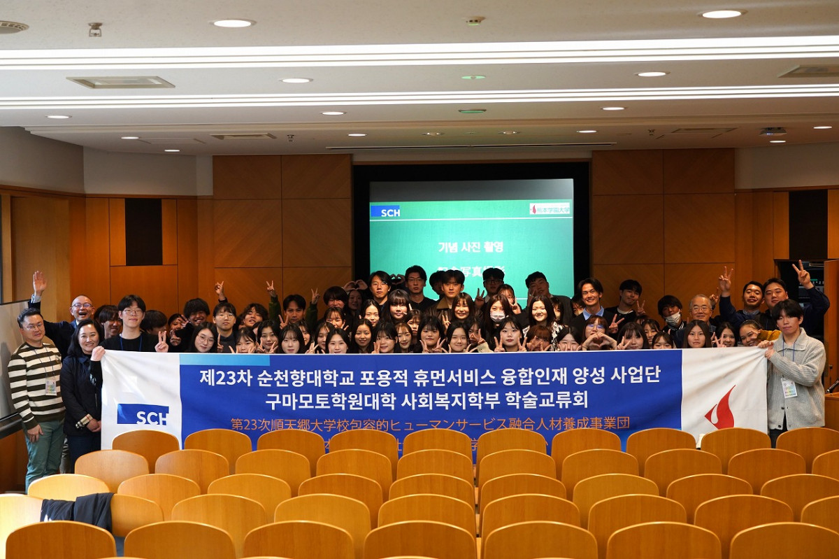11月25日(火)、26日(水)の2日間、本学(KGU)社会福祉学部との学部間交流協定校である韓国の順天郷大学校(SCH)研修団計33名(学生29名、教授2名、助教1名、通訳及びコーディネーター1名)が来学し、教育交流を行いました。今回の来学は、9月に「海外フィールドワーク」の授業にて本学から社会福祉学部の学生や教員計6名が韓国牙山市にある順天郷大学校訪問と対になって行われたもの。