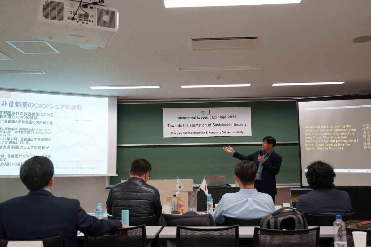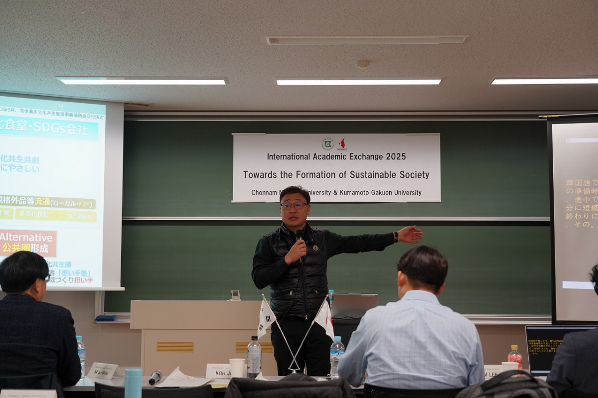 11月29日(土)、「新1号館 みらい」3階132教室において、「持続可能な社会形成に向けて」をメインテーマに、本学産業経営研究所・海外事情研究所と韓国・全南大学校経営研究所との国際学術交流研究報告会が開催されました。