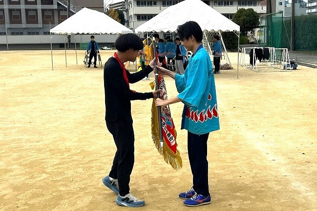 熱戦の結果、見事赤団が優勝を飾りました。閉会式では、体育常任委員会委員長の一尾さんより、赤団に優勝旗が手渡され、第67回体育祭は盛況のうちに幕を閉じました。
