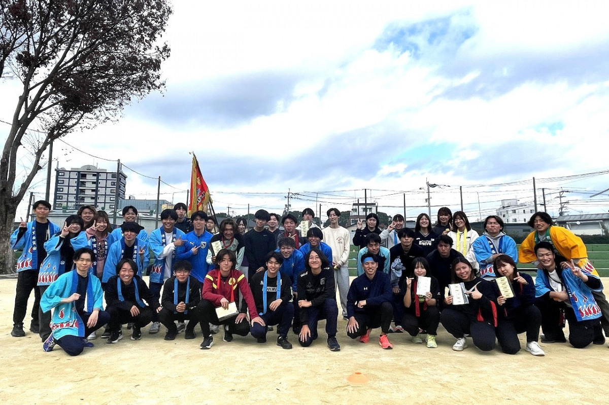 12月7日(日)、第一部学生自治会・第69代体育常任委員会主催、スポーツ研究会共催による第67回体育祭が、本学大江グラウンドにて開催されました。今回は「寒さを吹き飛ばせ 疾風怒涛の冬の陣」をスローガンに掲げ、44名の学生が赤団、黄団、青団の三つの団に分かれて参加し、熱気あふれる戦いを繰り広げました。