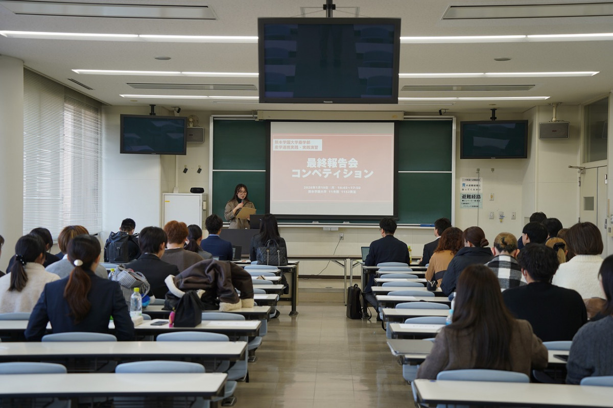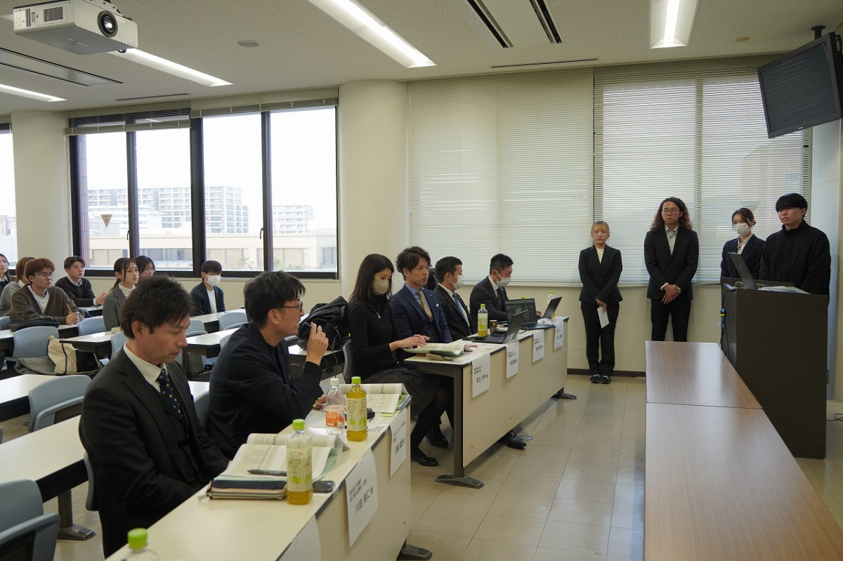 1月19日(月)、11号館の1152教室で、本学商学部が2025年秋学期に開講した科目「産学連携実践・実践演習」で、地元企業2社が抱える実際の経営課題に対し、学生がコンペティション形式で解決策を提案する最終報告会を開催しました。本科目は、2025年4月に本学商学部、株式会社セルモ、一般社団法人フミダスの三者で締結した「学生教育に関する連携協定」にもとづく実践型教育プログラムで、「ストックビジネス」をテーマに、学生たちは企業訪問や中間報告を重ねながら、マーケティング視点による課題解決策を検討してきました。