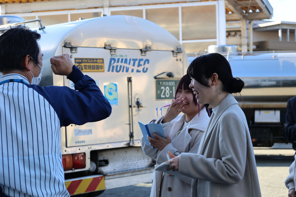 参加した2年生の女子学生は、「業種はまだ絞っていませんが、熊本で働きたいと考えており、熊本の企業である『らくのうマザーズ』の工場見学に参加しました。工場見学や座談会をとおして就職活動のイメージがより具体的になり理解が深まりました。実際にどのような工程で商品が作られているのかを見学できる機会はなかなかないので、貴重な体験ができて良かったです」と話しました。