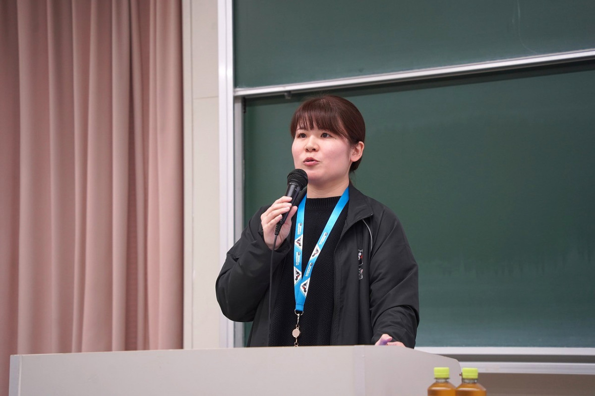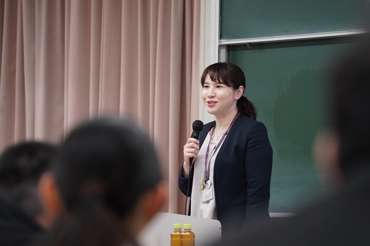 熊本県人事委員会事務局公務員課の浅井美紀氏は、県の仕事を「広い」「つなぐ」「支える」という観点から紹介。県内全域を対象に、観光、福祉、災害対応など幅広い分野に関わり、国と市町村をつなぐ役割を担っていると説明がありました。また、浅井氏は3年間携わった福祉課での経験を踏まえ、生活困窮世帯への支援を通じて県民の暮らしに直接関われるやりがいについて語りました。