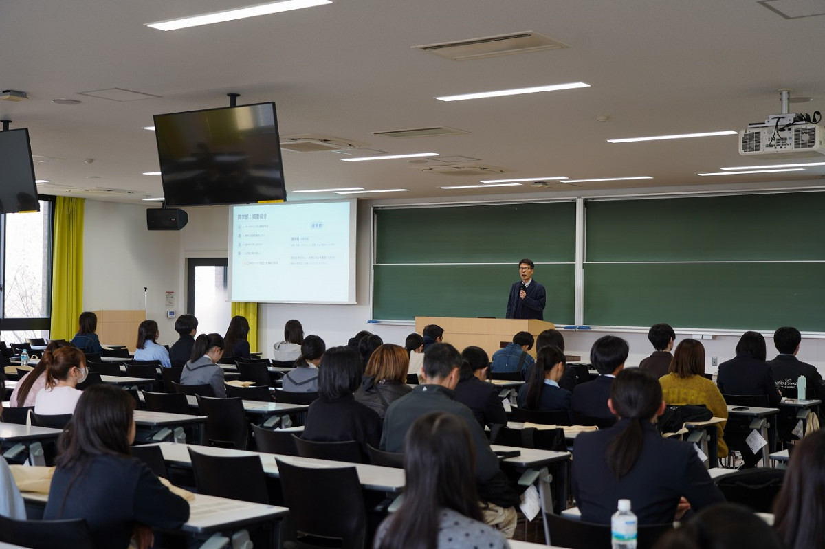 各学部・学科の学びの特徴や取得可能な免許・資格についてや、入試制度の説明が行われ、参加者は本学での学びや入試制度への理解を深めました。また、春のキャンパス見学会では初めて実施した保護者対象説明会では、就職課・学生課・国際教育課の職員が、就職状況や奨学金制度、留学制度などについて丁寧に説明し、約50名の保護者が熱心に耳を傾ける姿が見られました。