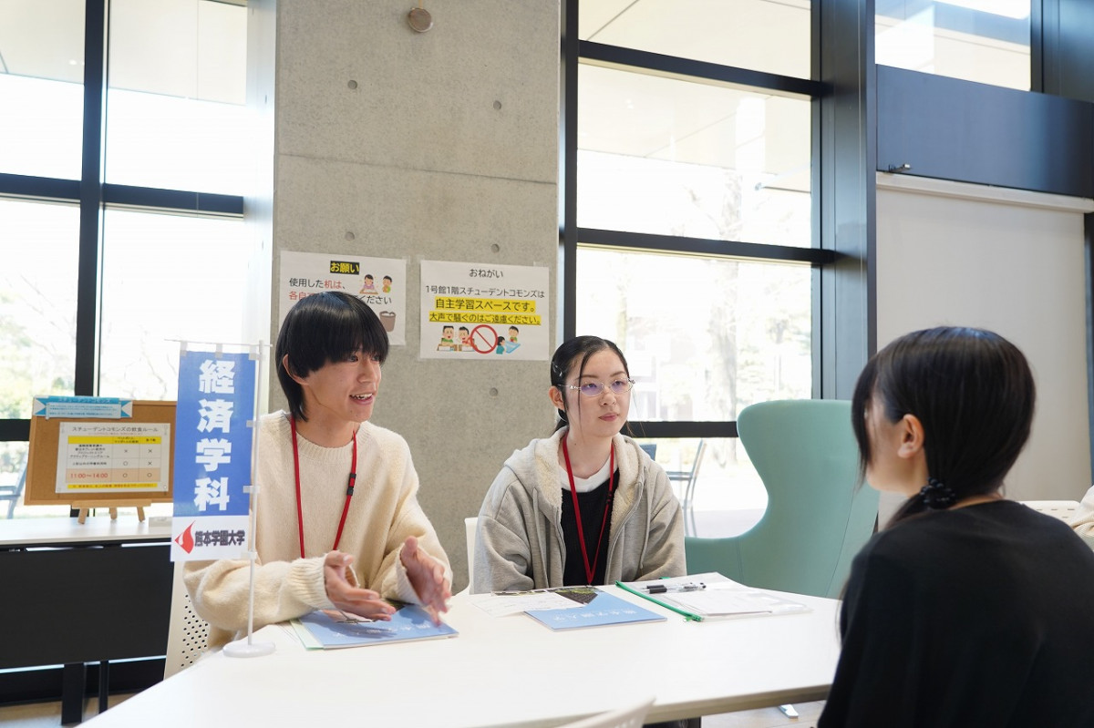 参加した天草拓心高校の男子生徒(新3年生)は、「実際にキャンパスに足を運んだことで大学の雰囲気がよく分かり、参加して良かったです。個別相談ブースでは、大学生活の1日の流れを聞くことができ、とても参考になりました」と笑顔で感想を語りました。ご参加いただいた皆さま、誠にありがとうございました。