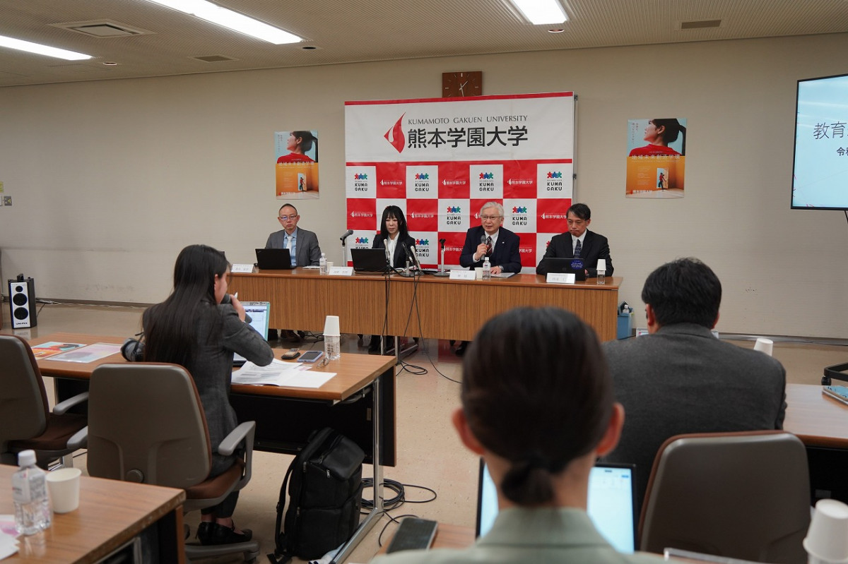 3月25日(水)、本館4階第2会議室で、令和9(2027)年4月に設置予定の教育組織「地域未来創造学環(仮称:設置構想中)」について記者発表を行いました。これは、学部等連係課程実施基本組織※にもとづき、商学部・経済学部・外国語学部・社会福祉学部第一部の4学部が有する専門分野を融合させた新しい教育組織を設置する経緯や概要を説明するために実施したものです。