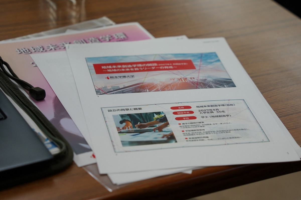 当日は報道関係6社が取材に訪れ、林裕学長、学環長就任予定の波積真理教授、副学環長就任予定の藤本延啓准教授、得重仁学環設置準備委員長ほか、学内関係者が出席しました。