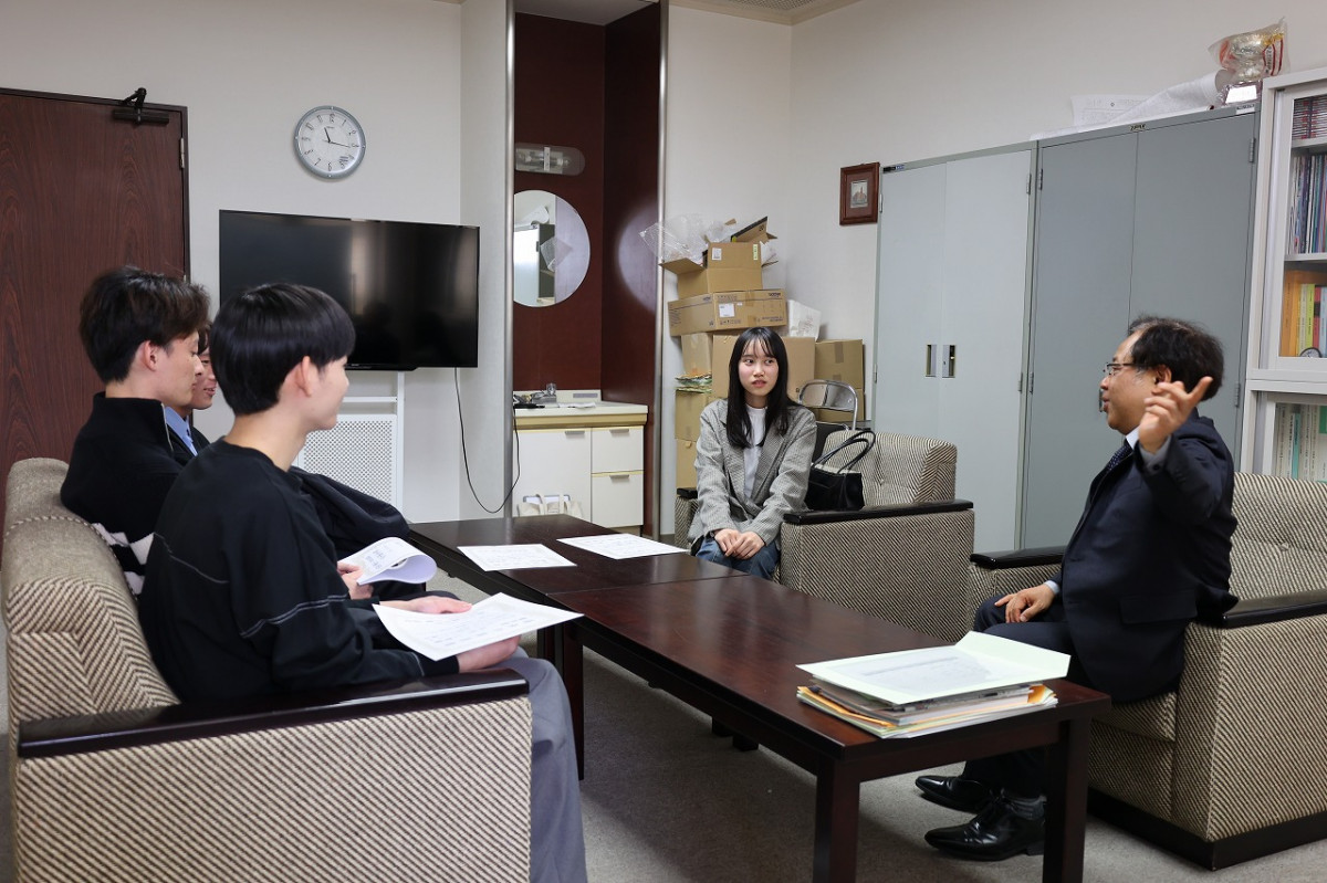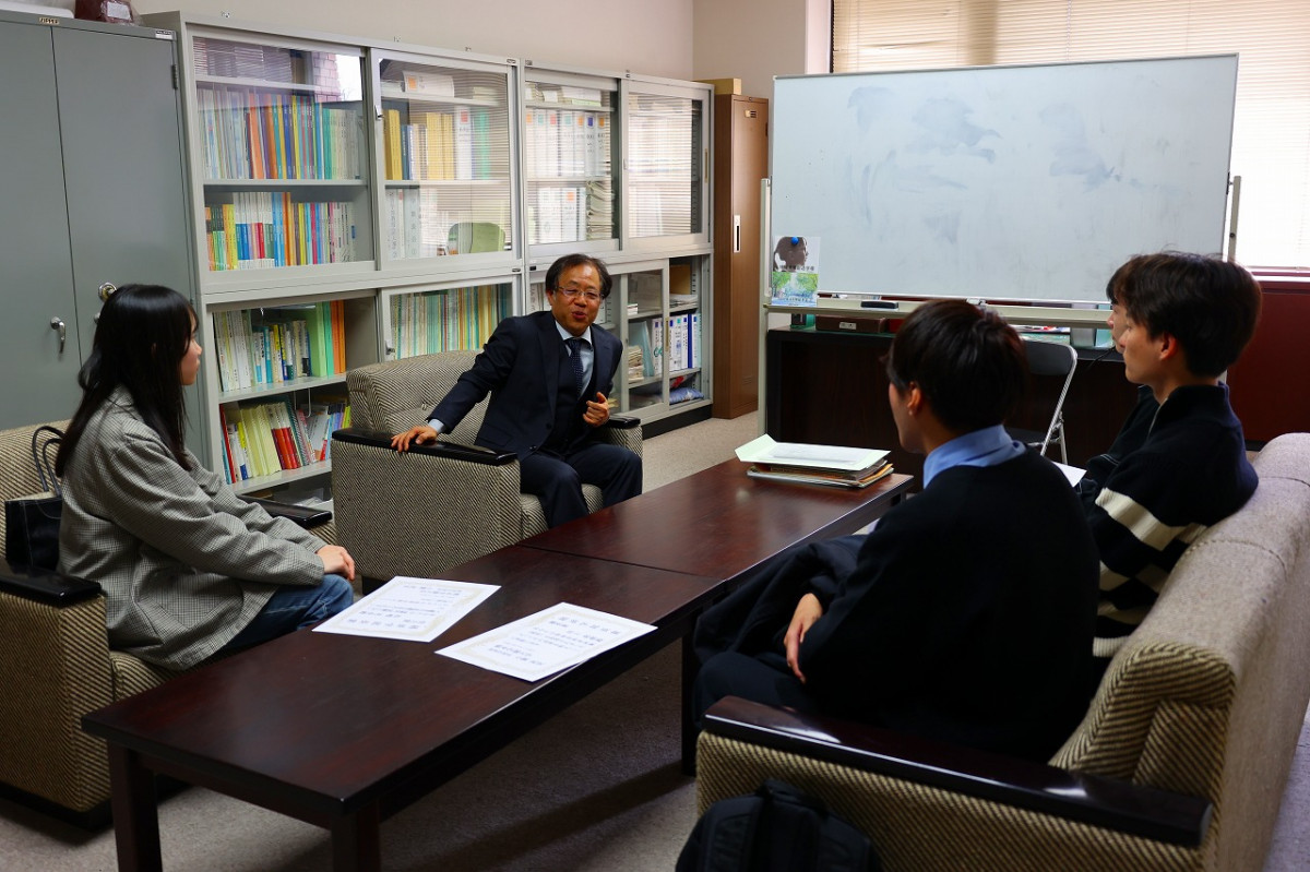 3月27日(金)、令和7年度経済学部長賞表彰式が経済学部長室で行われました。経済学部長賞は、経済学部が指定する国家資格および検定試験等を受験し、所定の成績・資格などを取得した学生を表彰することで、今後の一層の研鑽に期待して設けられた制度で、経済学部の4名が表彰されました。