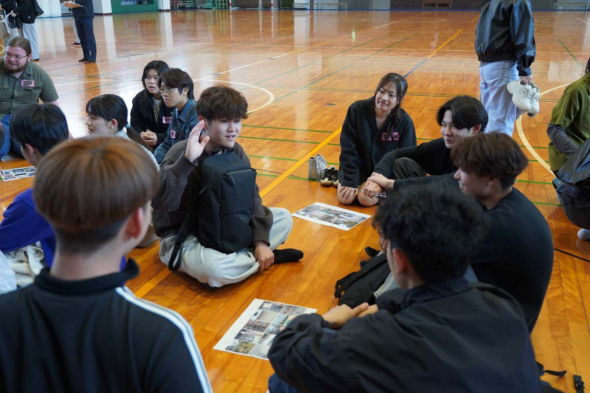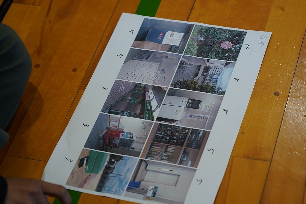 プログラムは二部構成で行われ、第一部では学内を舞台に提示された写真を手掛かりに、学内のどこで撮影されたものかを特定し、同じ画角で写真を撮り直す「学内フォトハント」というゲームに挑戦しました。難易度ごとに設定されたポイントを競い合うなか、学生たちは「お題」を手にボランティアで参加した在学生にヒントをもらいながら学内を巡り、チーム一丸となってゴールをめざしました。