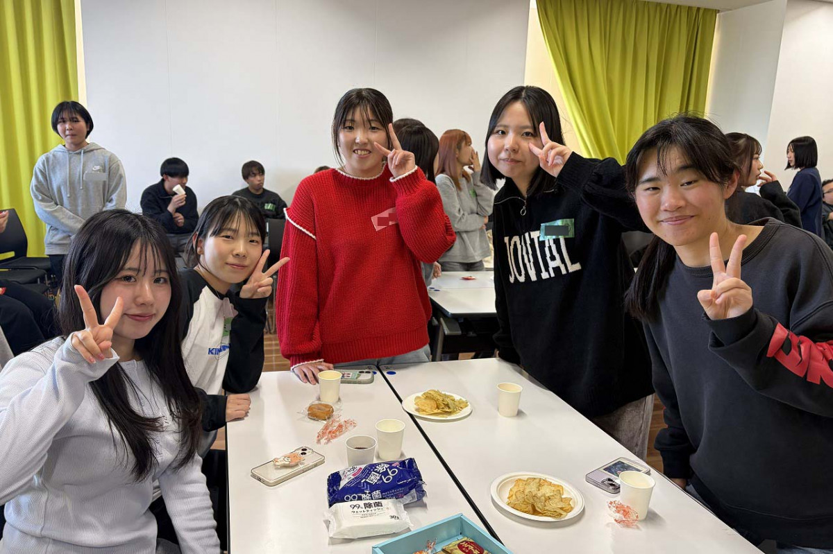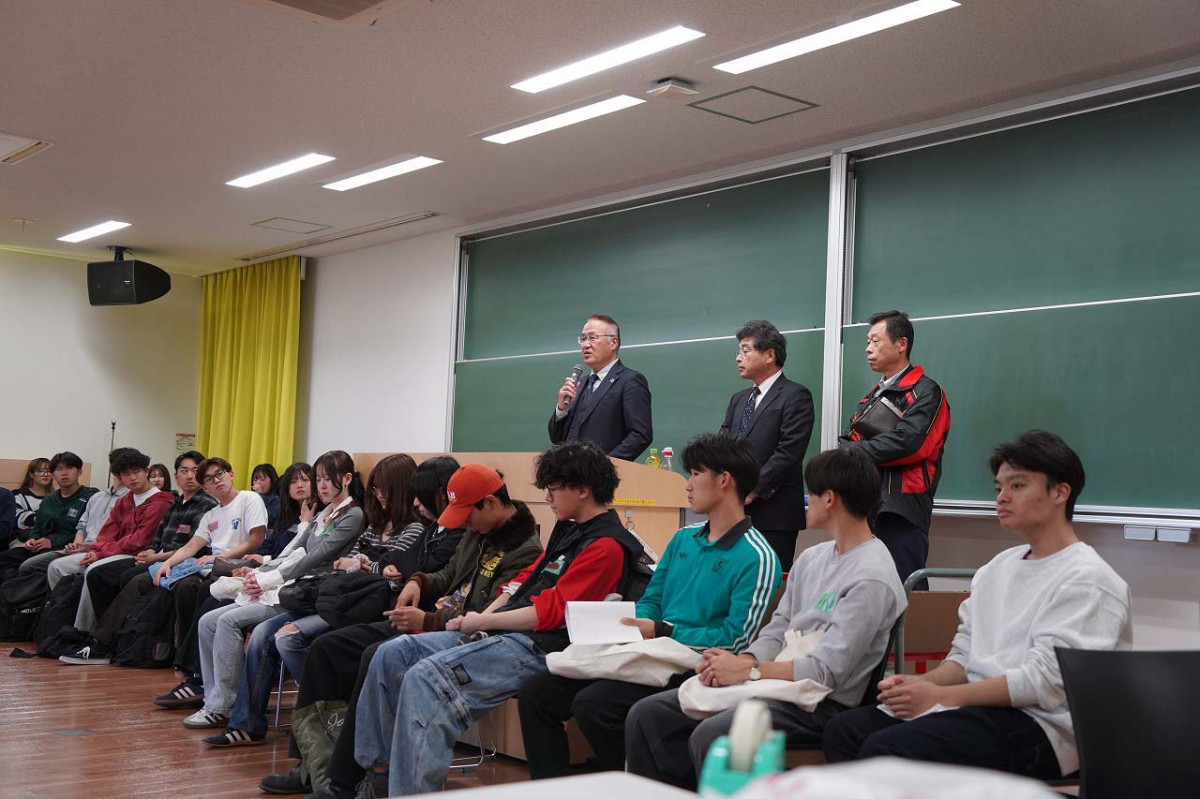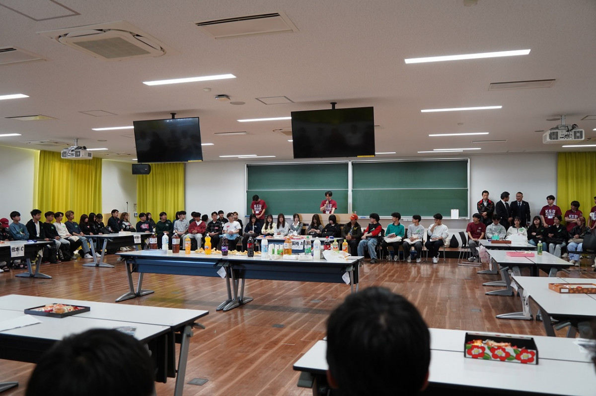 また、同窓会「志文会」から3名の幹部が出席し、学生への支援活動の紹介とともに県外出身者への温かい激励の言葉が送られました。その後の歓談の時間では、飲み物やお菓子を囲みながら、同郷の絆や新しい友人との会話に花を咲かせ、親睦を深めました。
