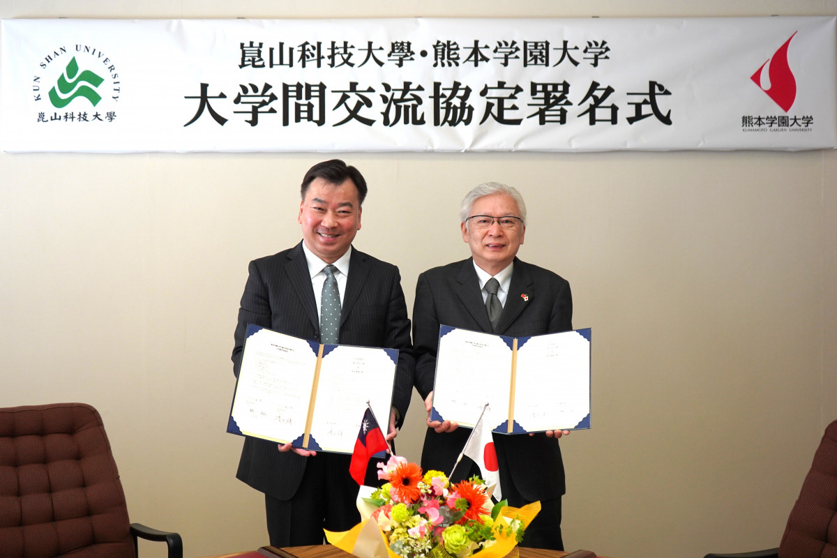両大学は、平成22(2010)年1月に大学間交流協定及び学生交流についての覚書を締結し、交換留学生の相互派遣等を行っています。これまで本学からは4名の交換留学生を派遣し、崑山科技大学からは13名を受け入れています。