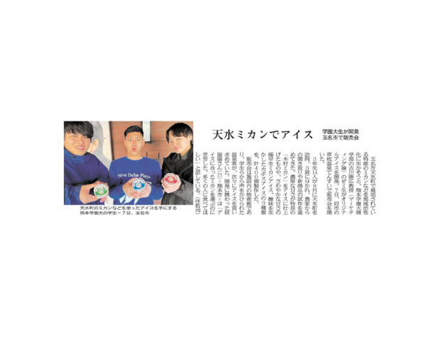 【新聞】天水ミカンでアイス 学園大生が開発 玉名市で販売会~熊本日日新聞に掲載されました
