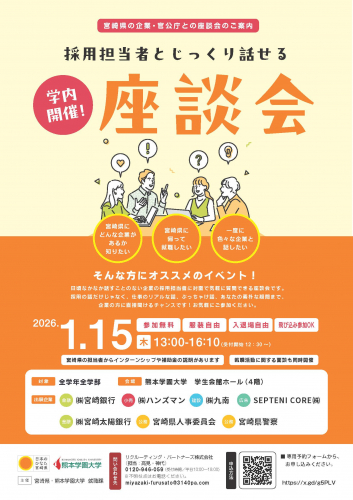 このたび、その取り組みの一環として、1 月15 日(木)に宮崎県内の企業および官公庁を招いた「座談会」を開催します。