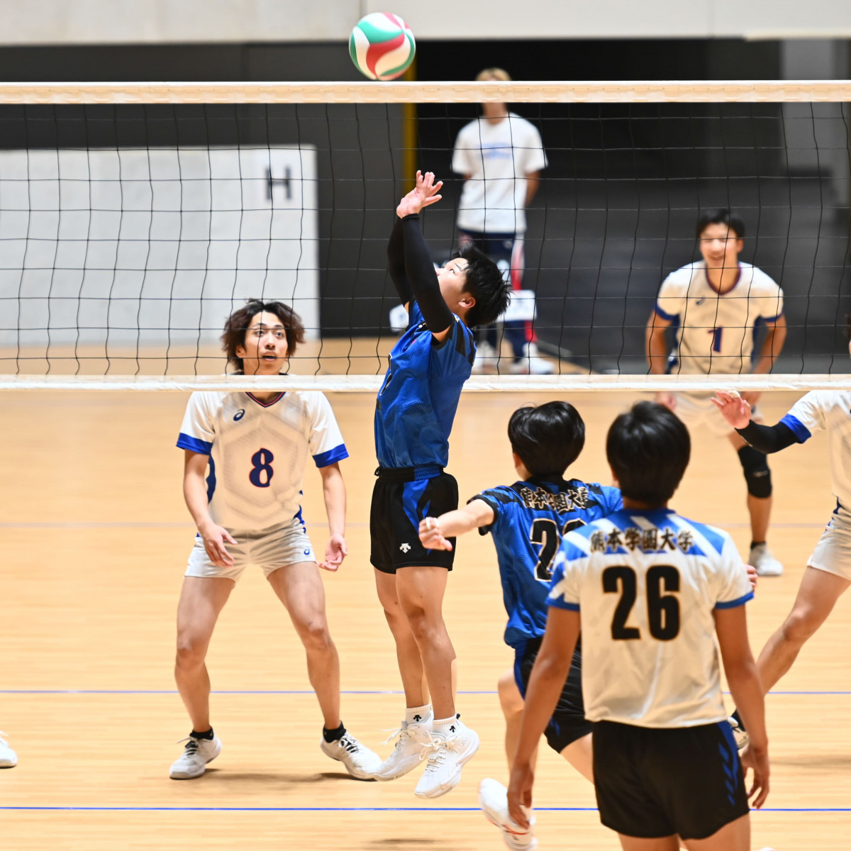 本学男子バレーボール部は今季、九州大学男子1部リーグにおいて過去最高となる4位という成績を収め、平成25年以来12年ぶりに本大会への出場権を獲得しました。今年度より1部リーグへ復帰してからの1年間、厳しい戦いの中でも着実に力をつけ、今年全国大会という大きな舞台に立つことができました。