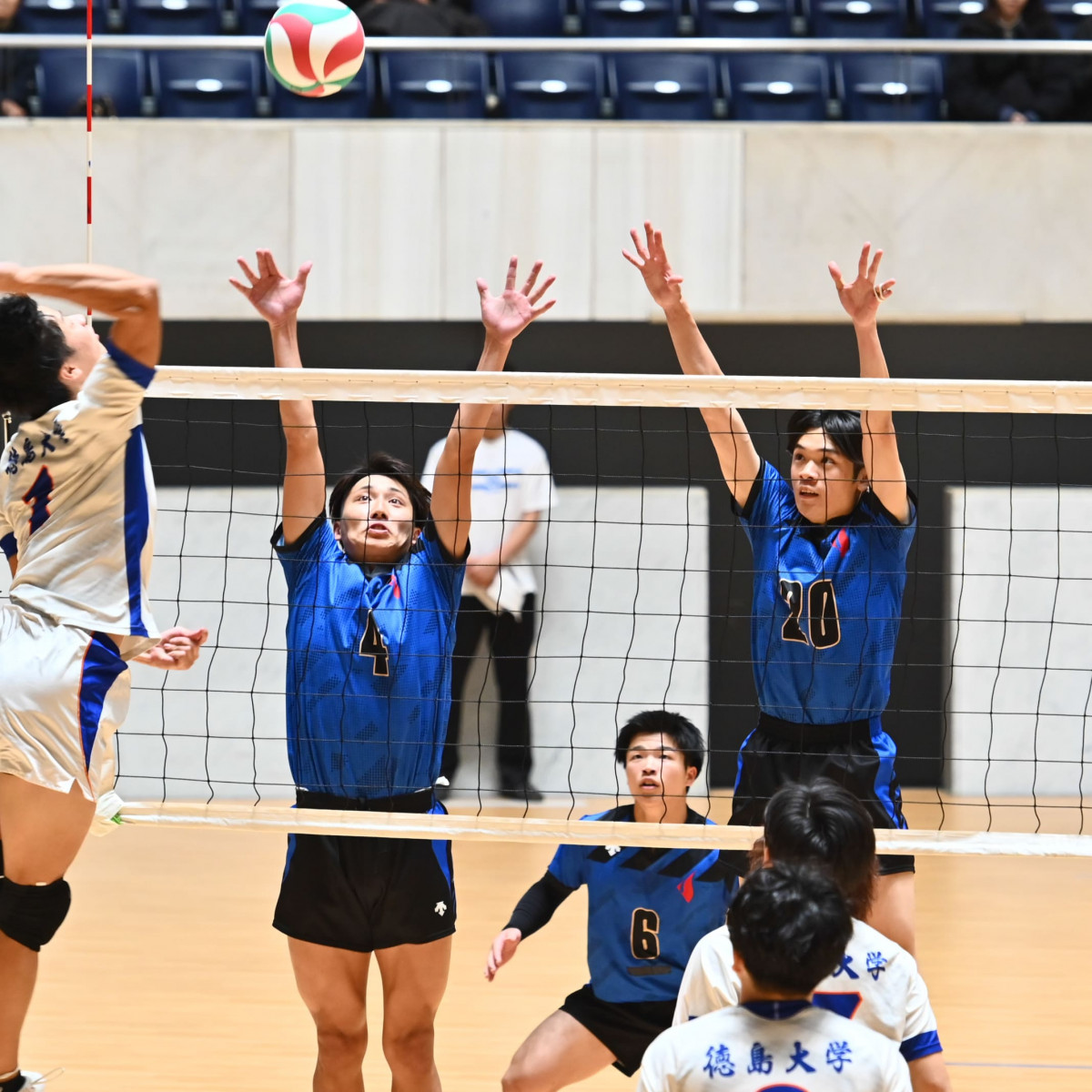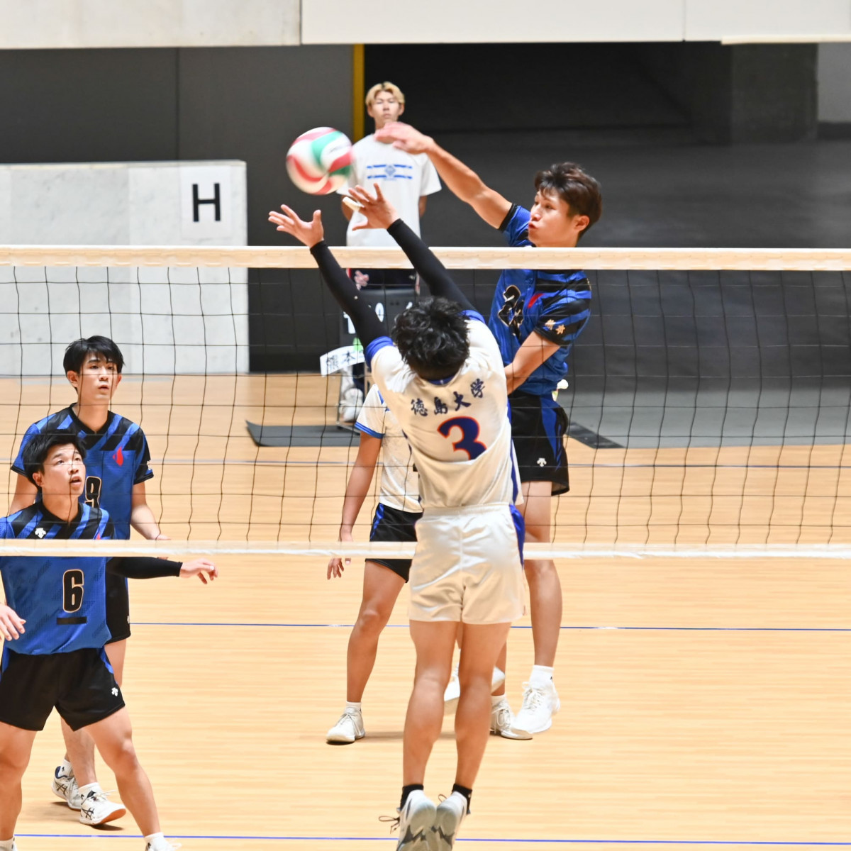 1回戦では徳島大学と対戦。試合は序盤から拮抗した展開となり、互いに一歩も譲らぬ激しい攻防が続きました。特に最終セットとなった第4セットは31-33までもつれ込む大接戦になりましたが、あと一歩及ばず、セットカウント1-3で惜しくも初戦敗退となりました。