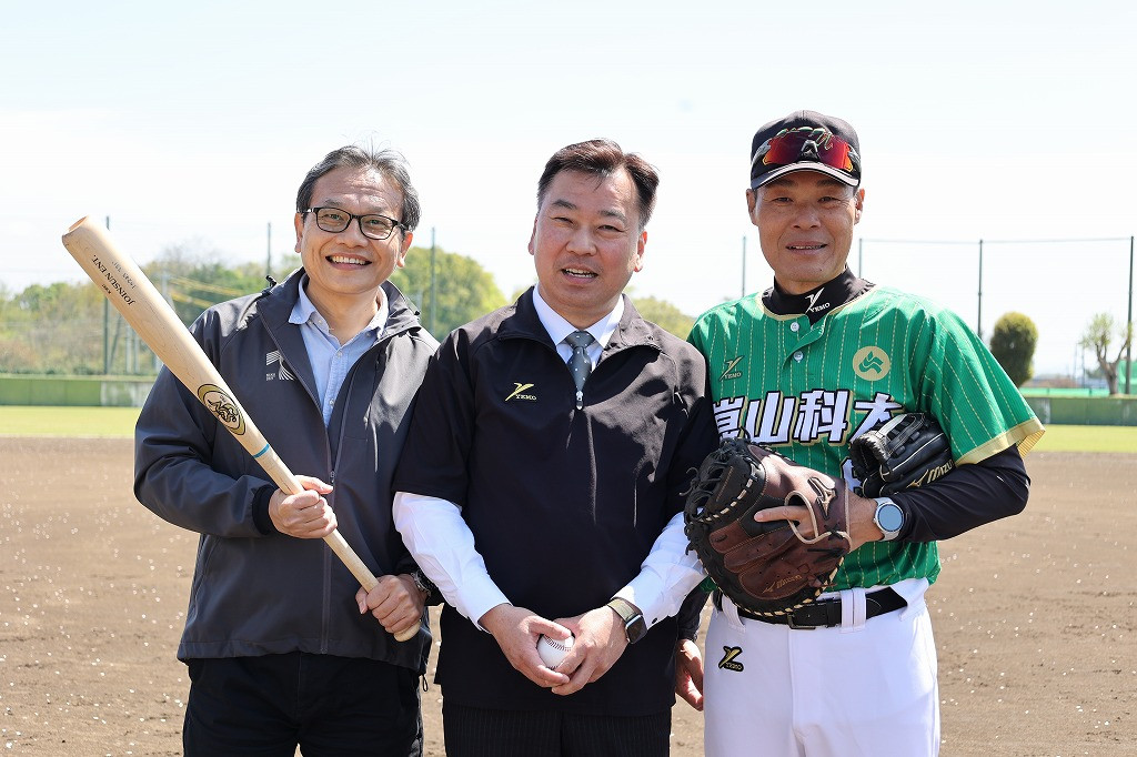 4月7日(火)、本学の交流協定校である崑山科技大学から学長訪問団をはじめ野球部関係者約40名が来日し、西合志グラウンドで本学硬式野球部と交流試合を行いました。